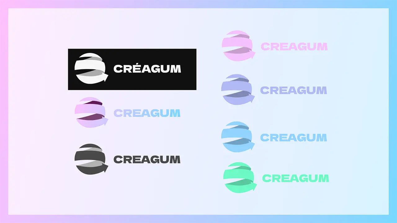 Refonte du logo de Creagum, une startup qui recycle des chewing-gums en jeux de plage.