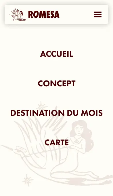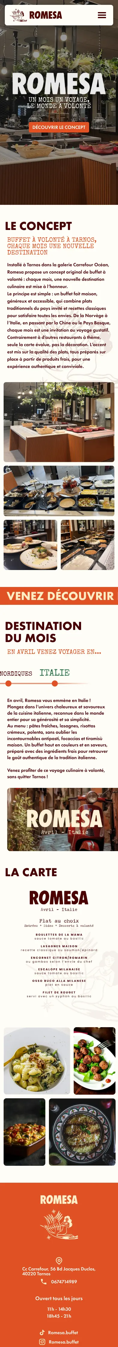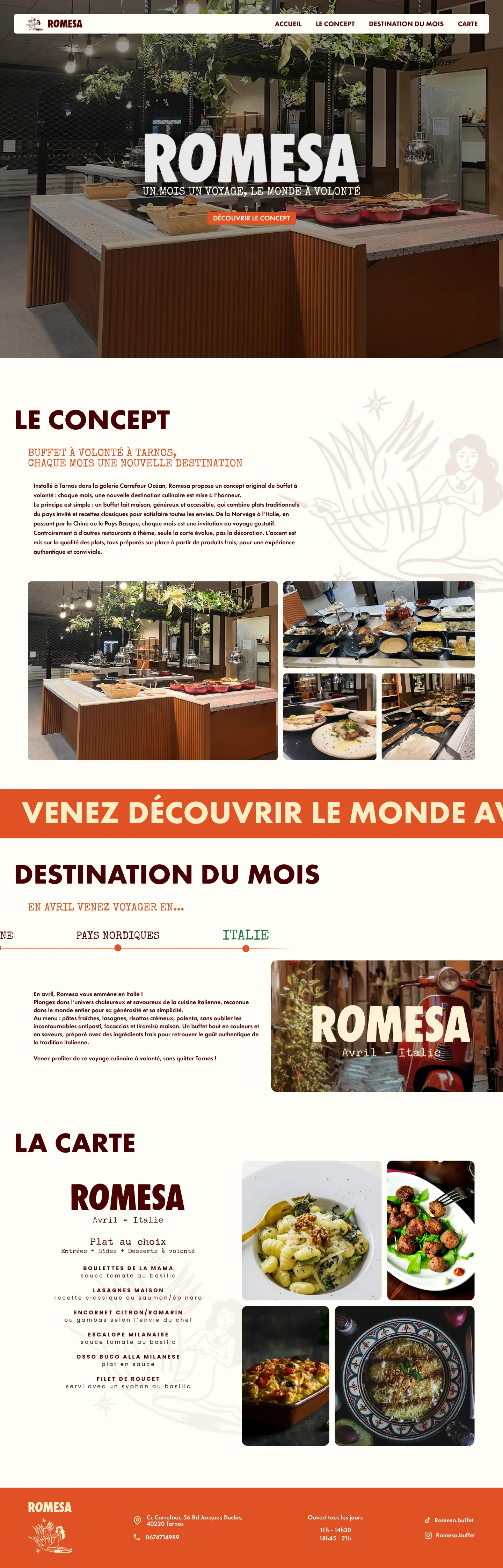 Design du site internet de Romesa, un restaurant à volonté qui change de style de cuisine tout les mois.